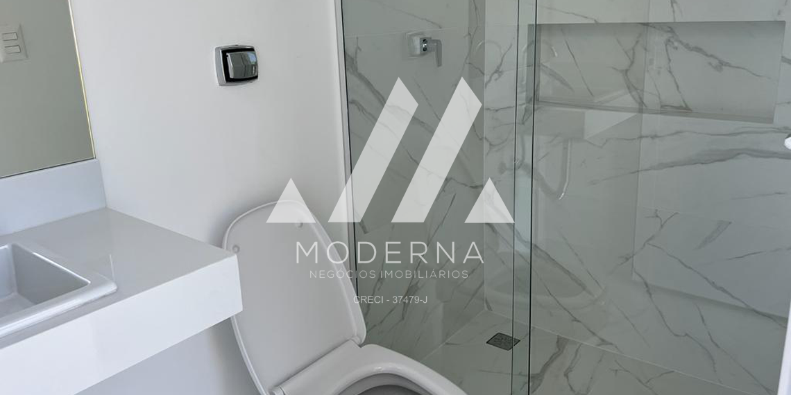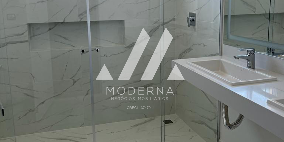 Excelente acabamento, com lindos porcelanatos, torneiras de primeira qualidade, aquecimento solar, pré instalação de ar condicionado, mármore travertino e guarda corpo de vidros na escada e paisagismo na fachada do imóvel. Esquadrias de alumínio automatizada. Banheiros com box e espelhos.